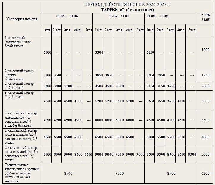 Дополнительное место (еврораскладушка), предусмотрено во всех категориях номеров (кроме 1-местного), стоимость размещения на дополнительном месте 700 руб.